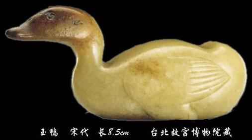 宋代的时候,它的工艺品很多时候是趋向一致的。我们对绘画有所了解的时候可以看出来,宋代的绘画比较写实。宋徽宗的花鸟图,我们都看过,那东西画得跟照片一样。那么玉器也追求这种写实,比如台北故宫有一个玉鸭子,非常地写实,跟真的一样。所有的细节以及肌体的表现都非常地逼真。