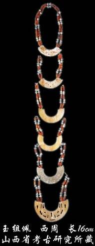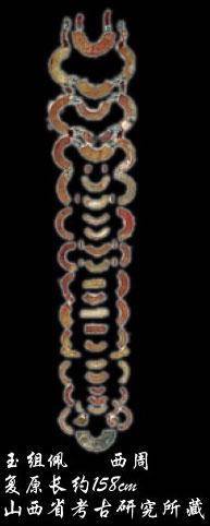 西周时期,玉器的佩带出现了一种特殊的形式,是什么呢?就是组佩。所谓组佩,很容易理解,两块以上的玉组合佩带,就叫组佩,西周组佩都是大量的玉用丝线连在一起,佩带在身上,非常漂亮。组佩中间要用一种玉器-玉璜。有学者认为"璜"字与"衡"字音近,衡有平衡之意,而玉璜在组佩中也起平衡的功能,这个道理是讲得通的。《礼记·经解》说"行步则有环佩之声",就是说你走路的时候,玉佩之间互相碰撞,发出丁丁当当的声音,很好听。那么,佩者就要注意自己的仪表和风范,动作稍微一大,声音就会变得特别响,不雅。古人在重大场合上的礼仪要求比今天严格。今天都比较随意,有时候很重要的场合,穿件T恤衫就去了,古人是绝对不允许的。为什么有这种组佩出现呢?就是要你注意礼仪规范。组佩文化对后世产生了巨大的影响。
