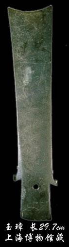 为什么兵器增加呢?说明社会矛盾的加剧,有阶级就有冲突,有国家就有冲突。怎么解决冲突呢?当时都是靠武力,打仗,所以兵器就变得非常重要。但是用玉做兵器,并不是用它来打仗。玉非常脆,再锋利也不可以直接用于战场,一砍就折了。玉兵器是作为一种礼仪性的物品,表明一种强大。就好像今天的国家仪仗队,军人手中持的枪都是仪仗用枪,并不用来打仗。这类象征性的玉兵器能有多大呢?现在存世的、能够看到的,大概有两尺长。玉兵器不会有使用的痕迹,主要是在腥风血雨的战争中取得一种象征力量,一种王权的力量。