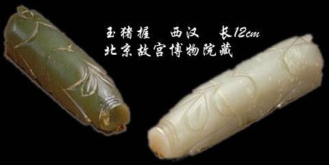 死者嘴里含着唅蝉,手上有什么呢?过去讲究不能空着手走,手上得握有东西,尤其有钱人。那么握什么呢?玉握,一般是个猪形。中华民族饲养猪的历史非常长,至少有五六千年的历史。所以猪在很长的一段时间都作为农耕民族重要的财富。当人去世以后,手里会握有猪。那么最好的呢,当然是玉握。玉猪和玉蝉是在汉葬玉中非常重要的一个门类。