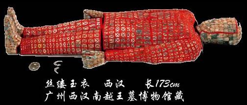 最特殊的玉衣是广州发现的南越王墓,那是一个偶然的发现,本来想在那儿盖楼房,挖地基就挖出这么一个南越王墓来。这个墓没有被骚扰过,历史上没有人盗过。它出现的玉衣是丝缕的。丝缕经过两千年以上的时间,丝都腐烂了。